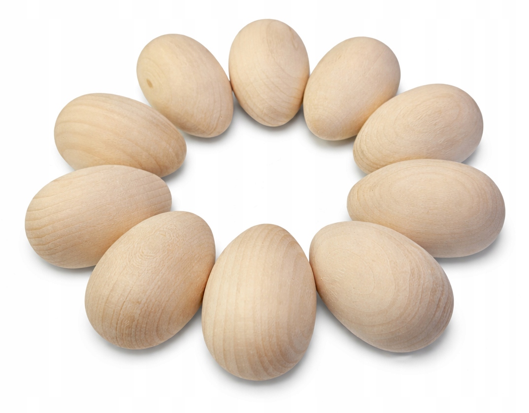 Każde jajko wykonane jest z litego drewna i pozostawione w naturalnym, surowym kolorze. Dzięki temu możesz nadać mu dowolny charakter – od rustykalnego, przez skandynawski, po elegancki i nowoczesny.